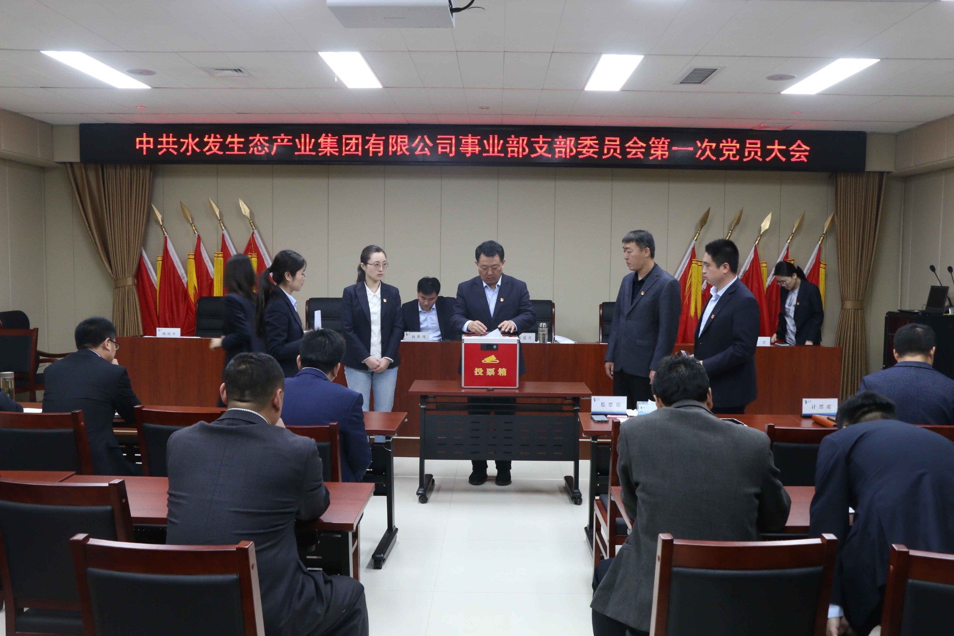 本次党员大会采取不记名投票和差额选举的方式,选举集团工会主席、总经理助理黄建喜为党支部书记,选举产生了4名支部委员会委员。随后召开党支部第一次委员会全体会议,并宣布了委员分工。