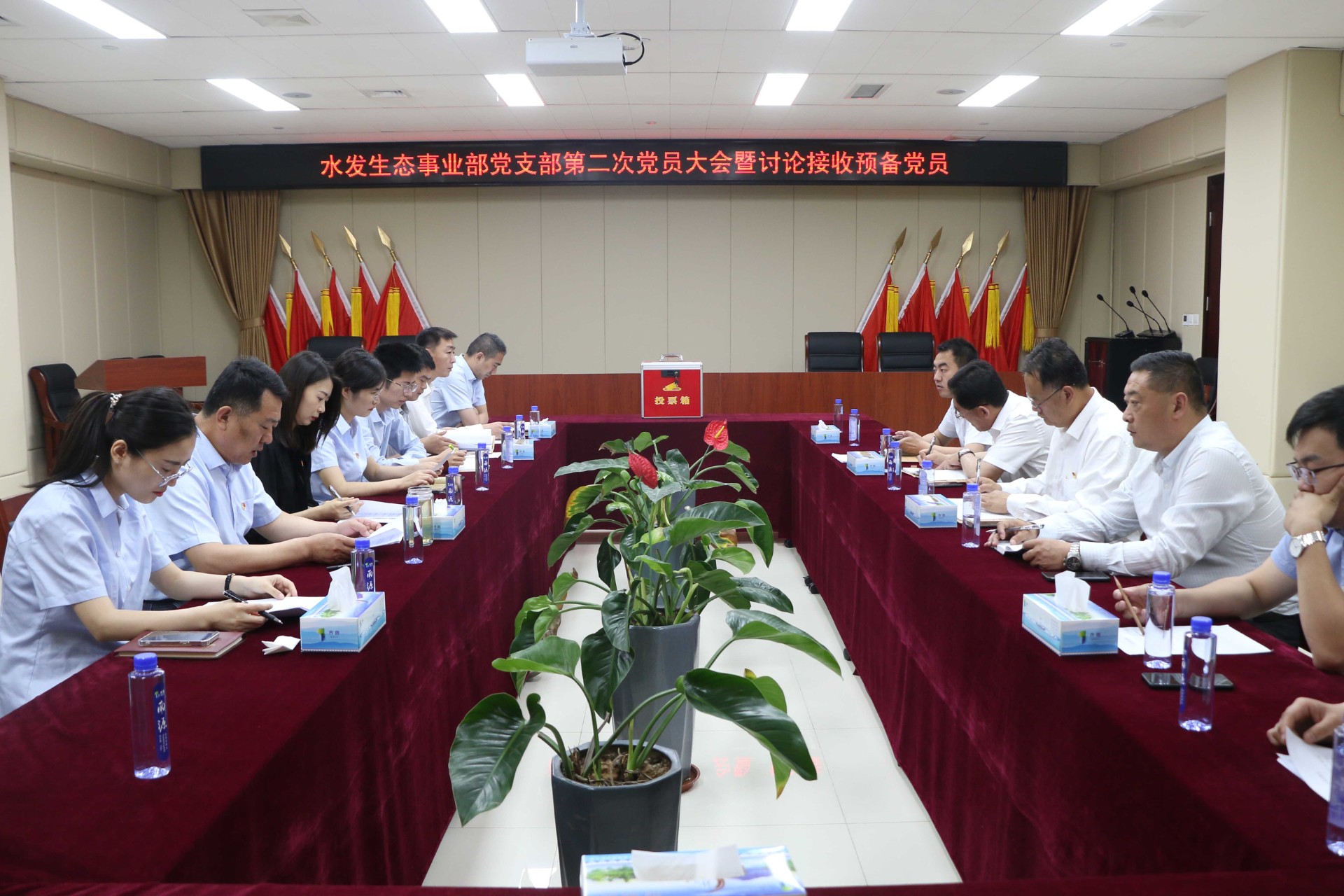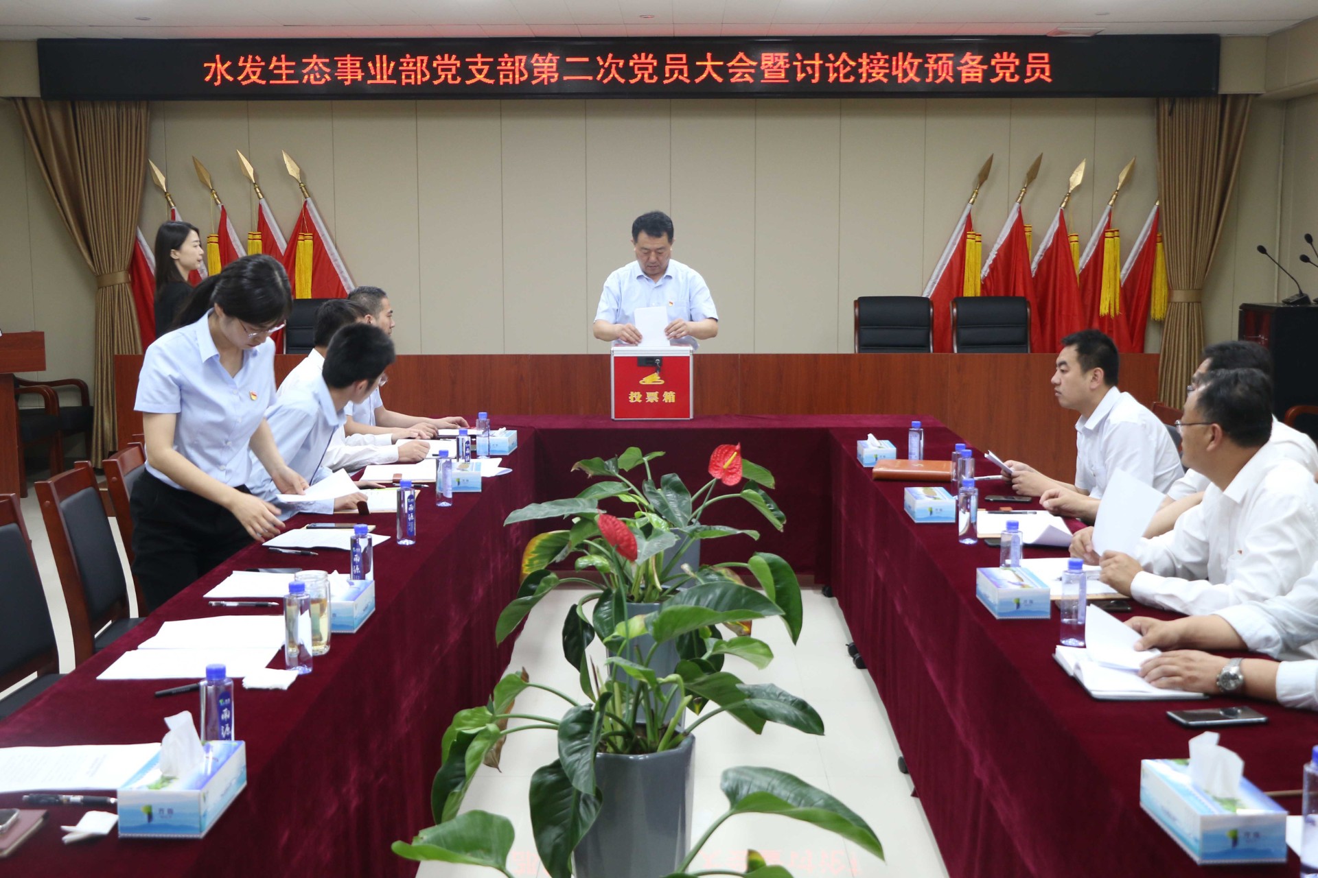为进一步加强支部党员队伍建设, 5月28日,水发M88事业部党支部召开第二次党员大会,讨论接收预备党员,并进行了支部书记上党课活动。会议由事业部党支部书记黄建喜主持,全体党员和1名发展对象参加会议。