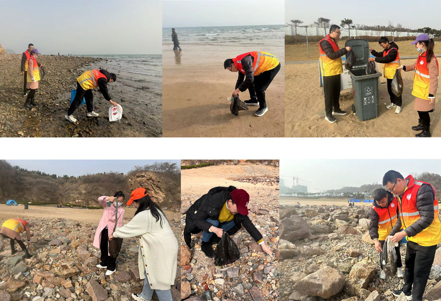 活动中,志愿者们拿着垃圾回收袋,沿着石老人海水浴场一丝不苟地清理海滩上的碎玻璃、烟头、塑料、空瓶等垃圾杂物。尽管海风大,天气冷,但志愿者们干劲十足,经过大家的共同努力,海滩上的垃圾杂物被清理的干干净净。