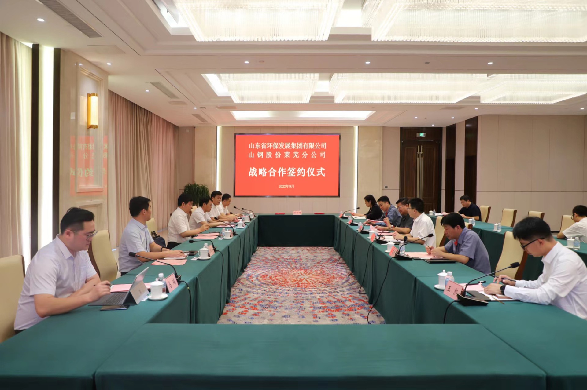 9月29日,山东省环保发展集团有限公司与山钢股份莱芜分公司在济南市钢城区签署“战略合作协议”。钢城区委常委、副区长高宇,山钢集团党委委员、副总经理、山钢股份党委书记、董事长王向东,省环保集团党委副书记、董事、副总经理曾繁领,省环保集团党委委员、副总经理、水发M88集团党委书记、董事长公培山出席签约仪式。