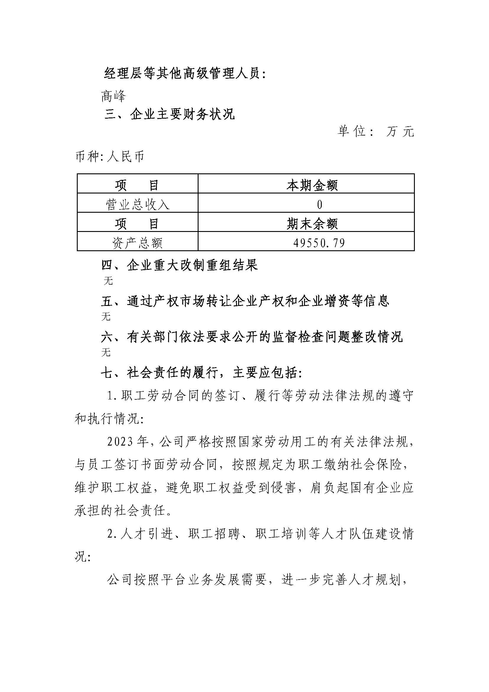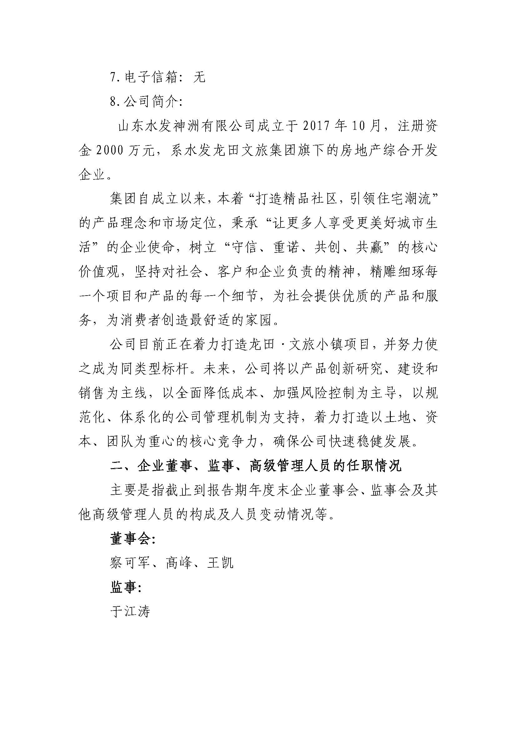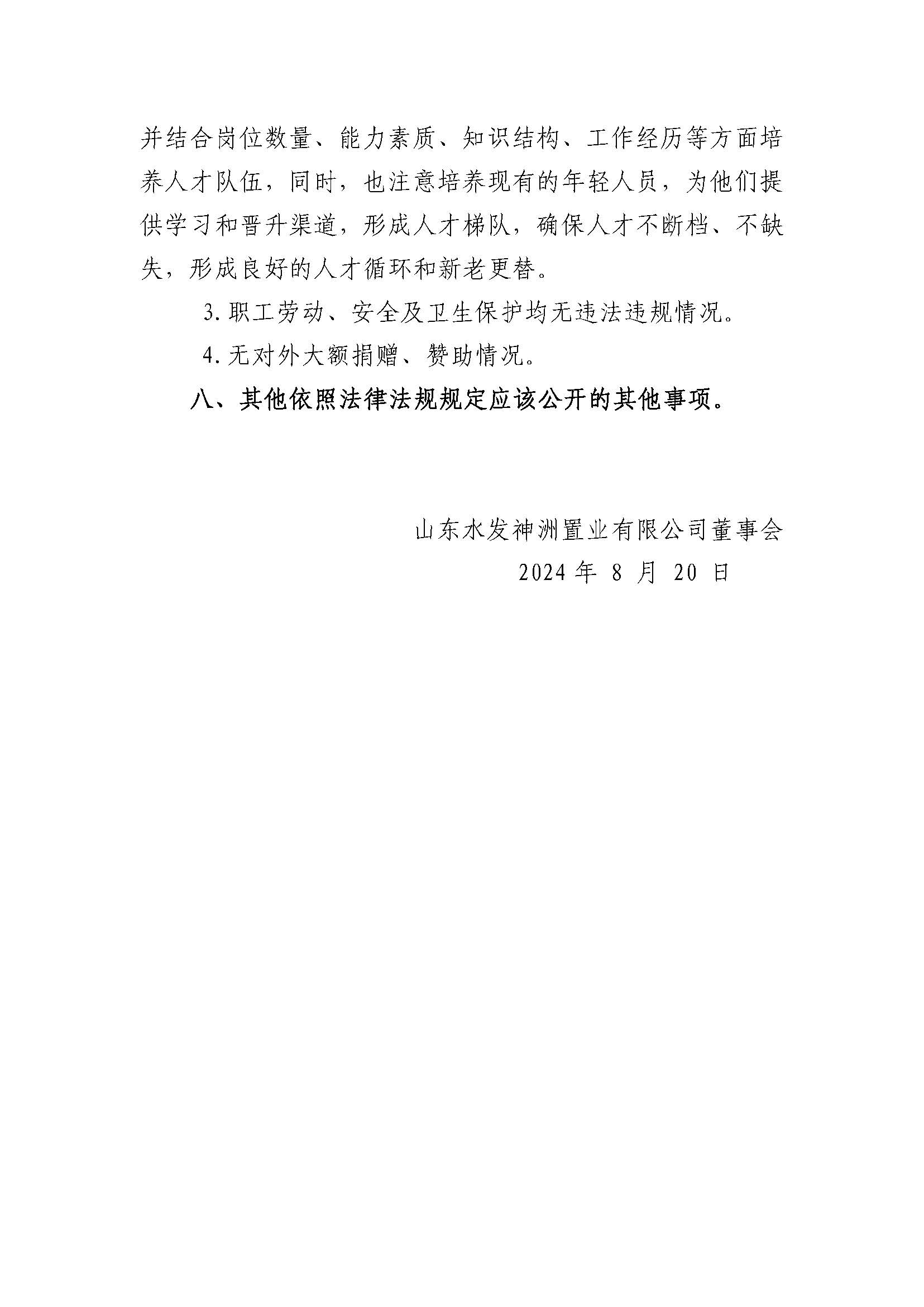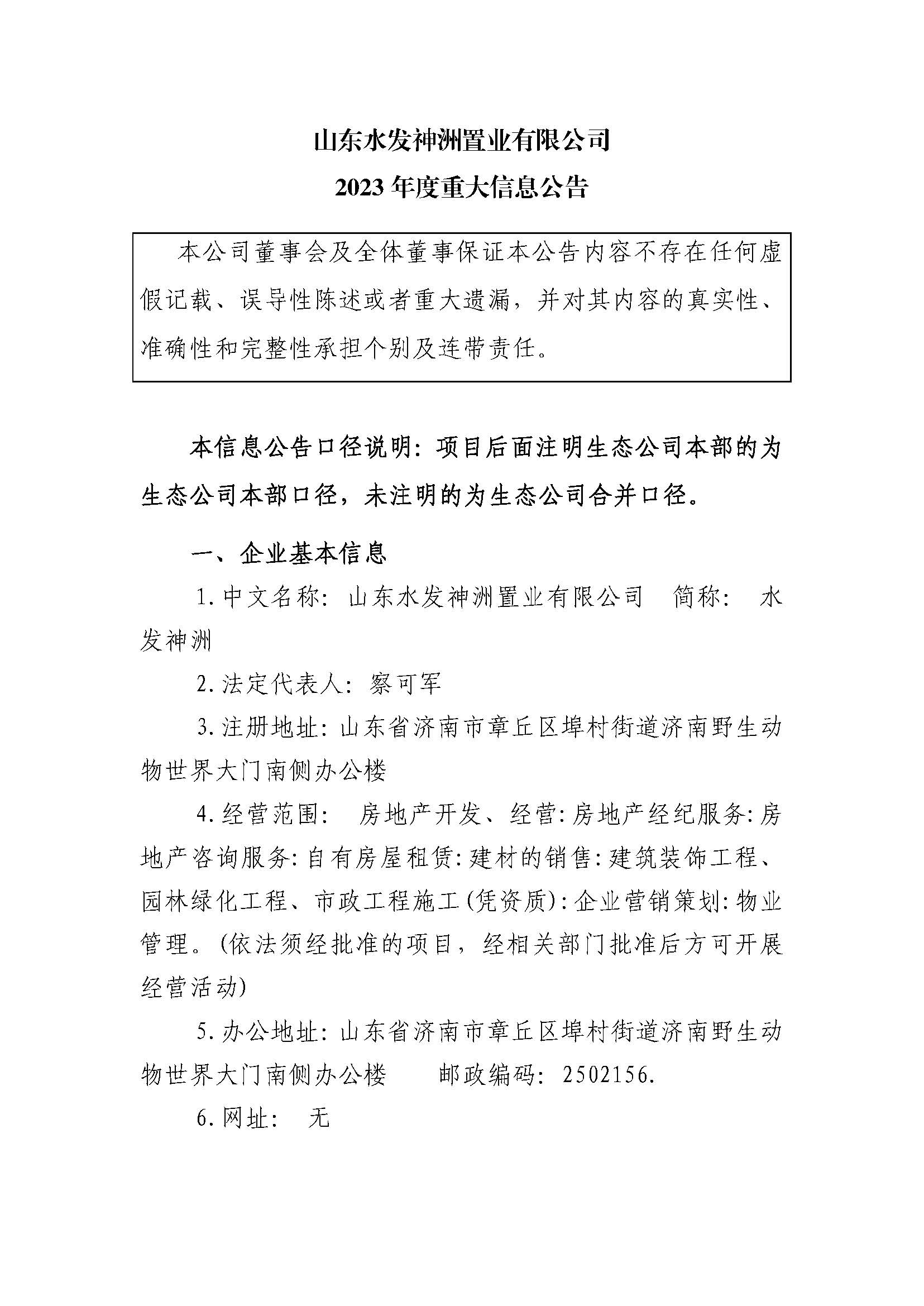 山东水发神洲置业有限公司2023年度重大信息公告