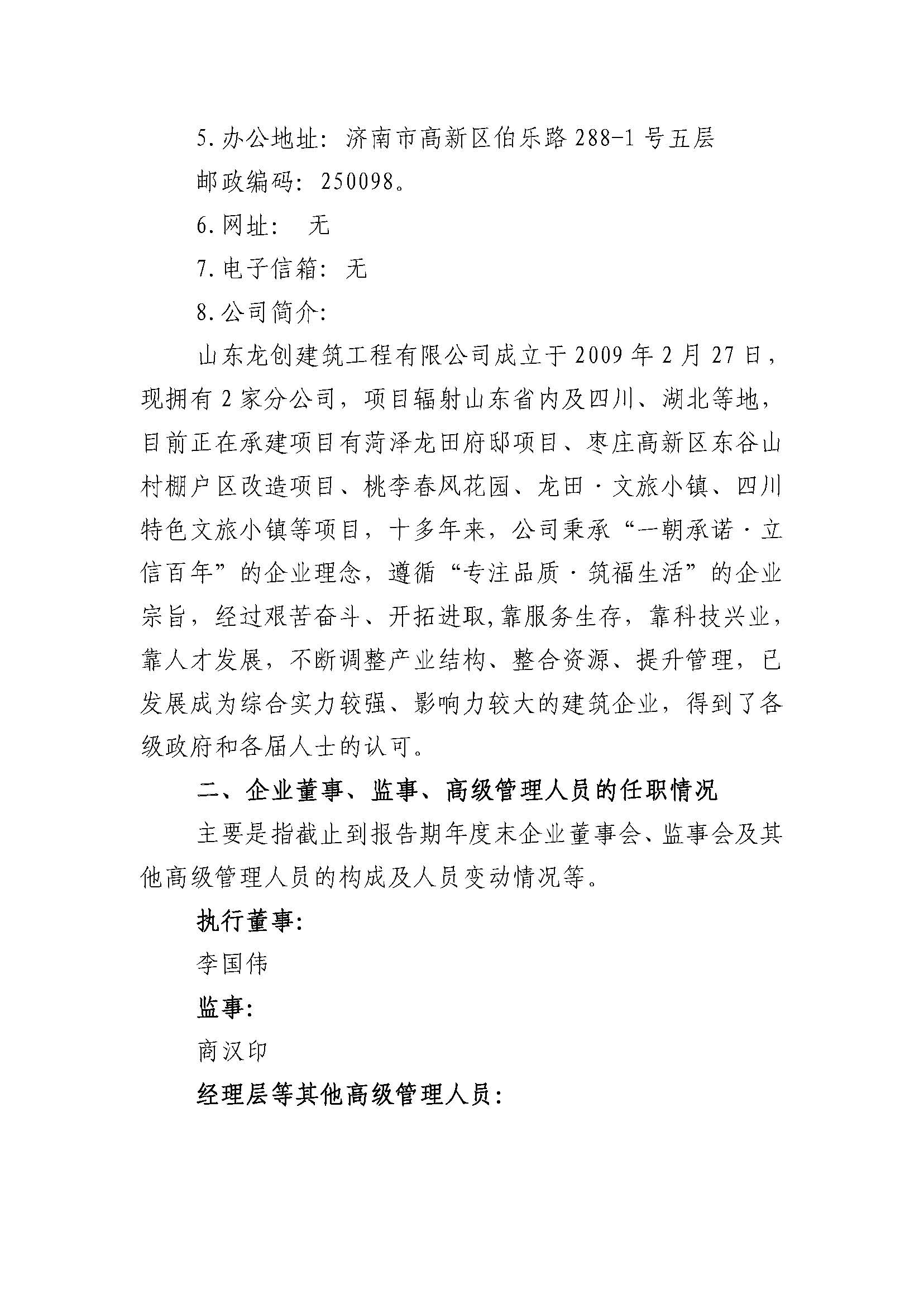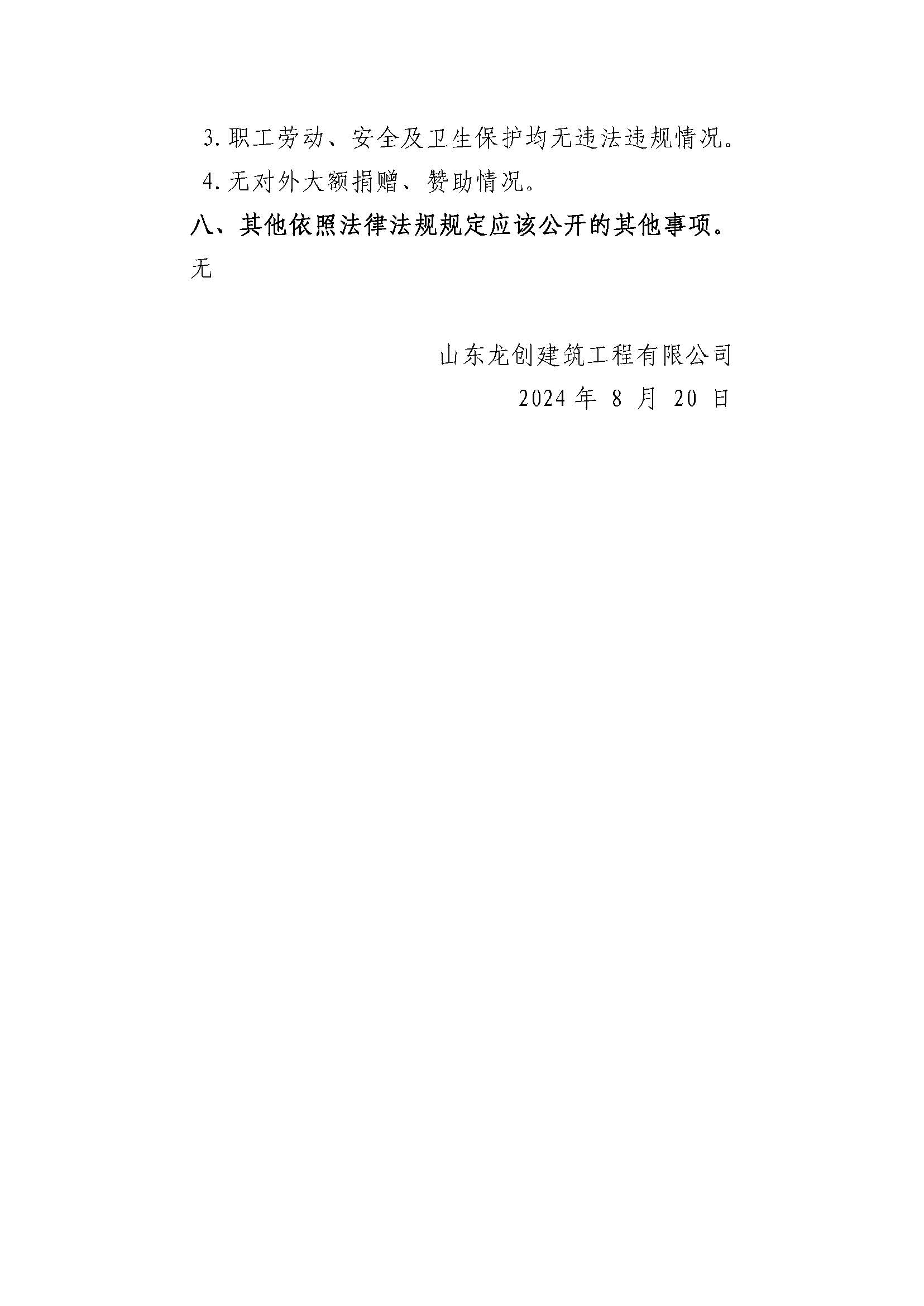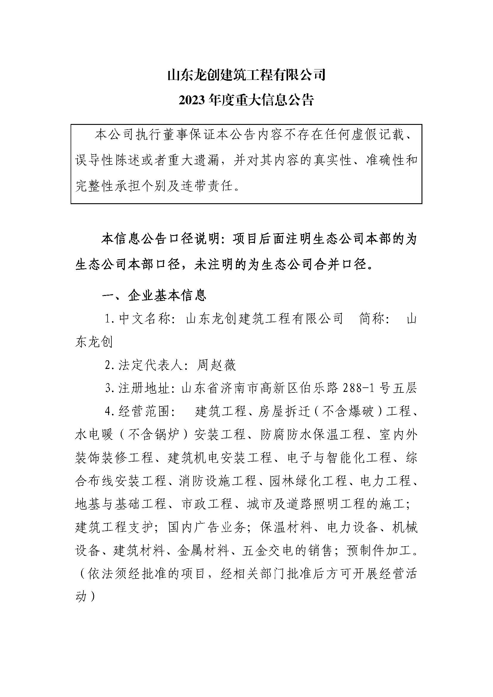 山东龙创建筑工程有限公司2023年度重大信息公告