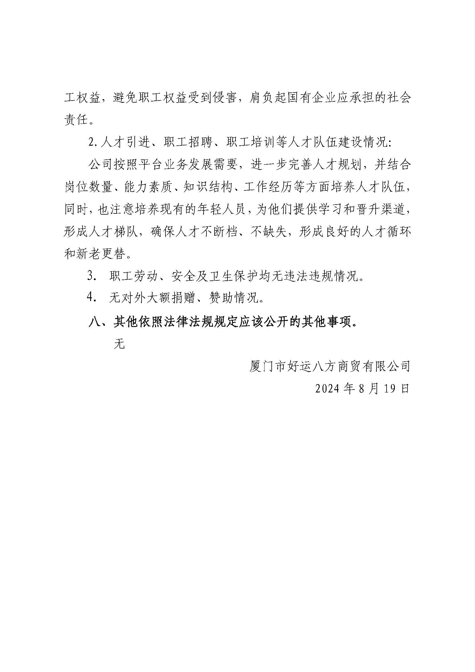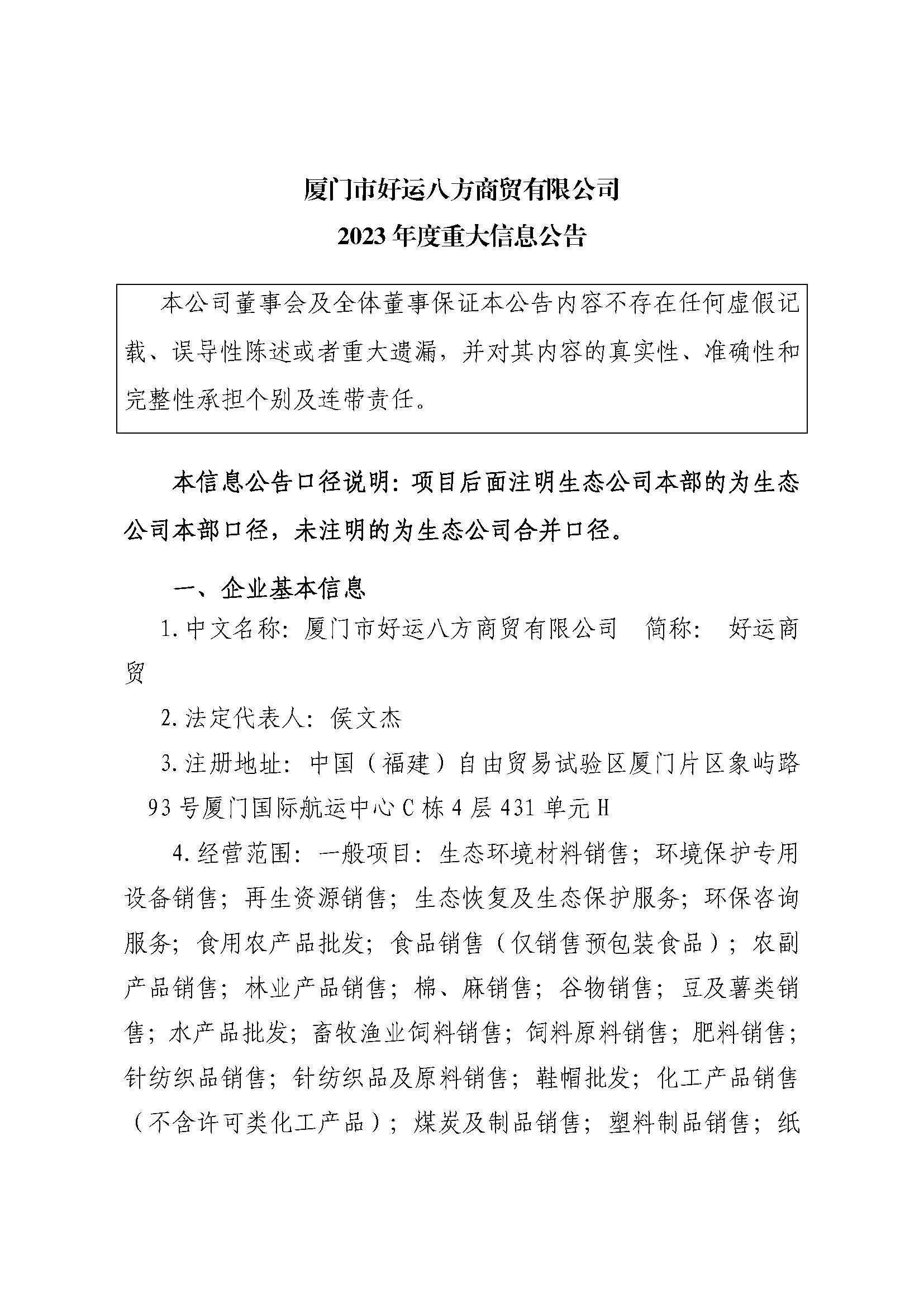 厦门市好运八方商贸有限公司2023年度重大信息公告