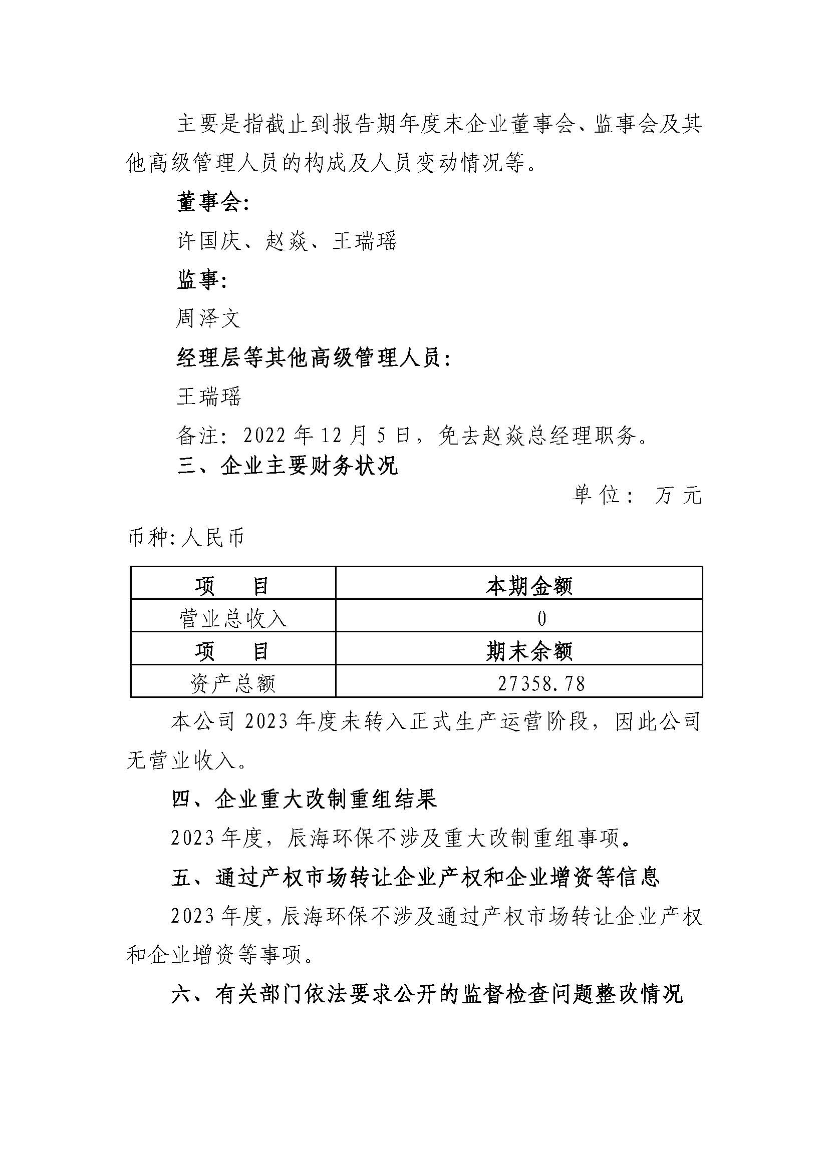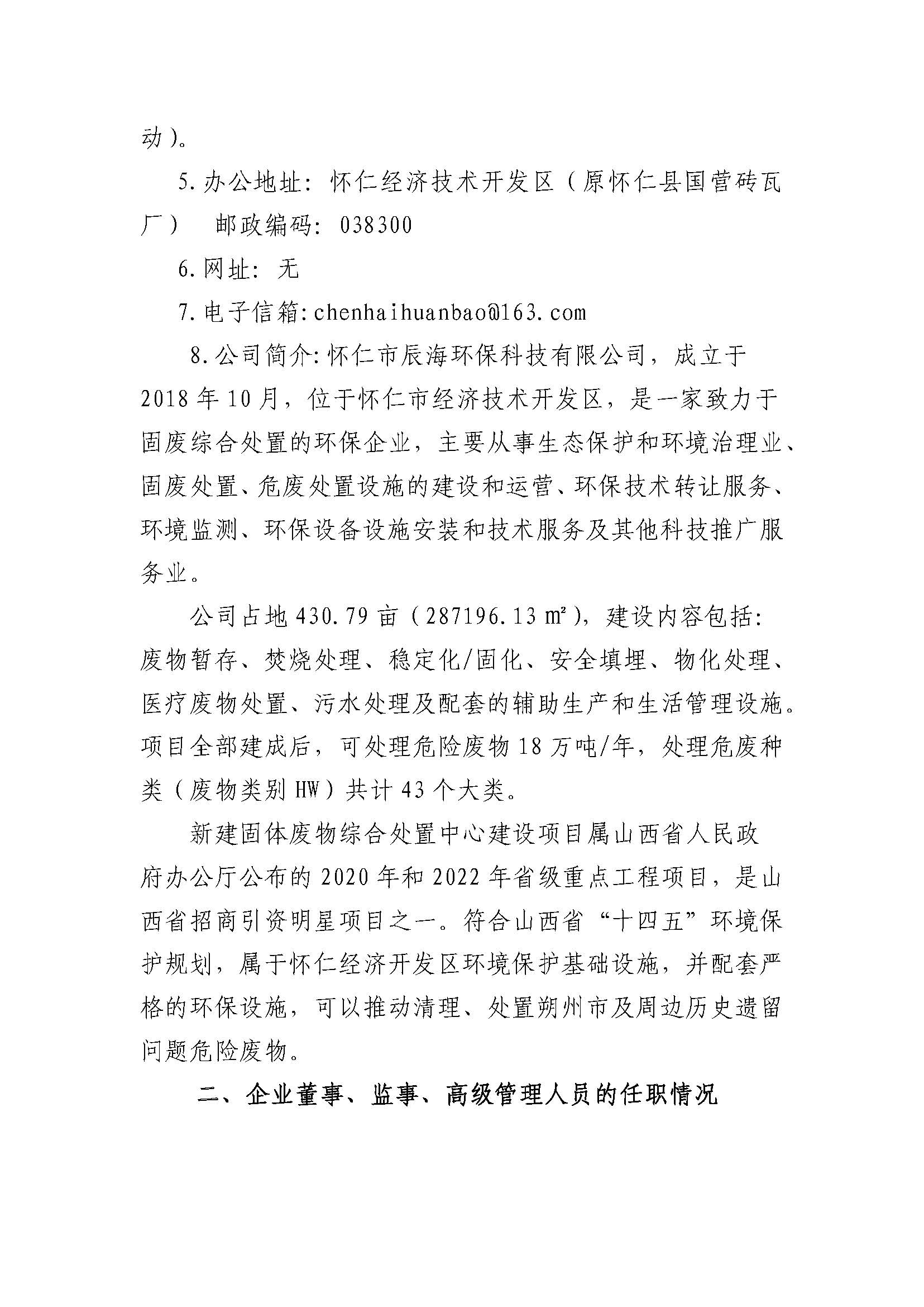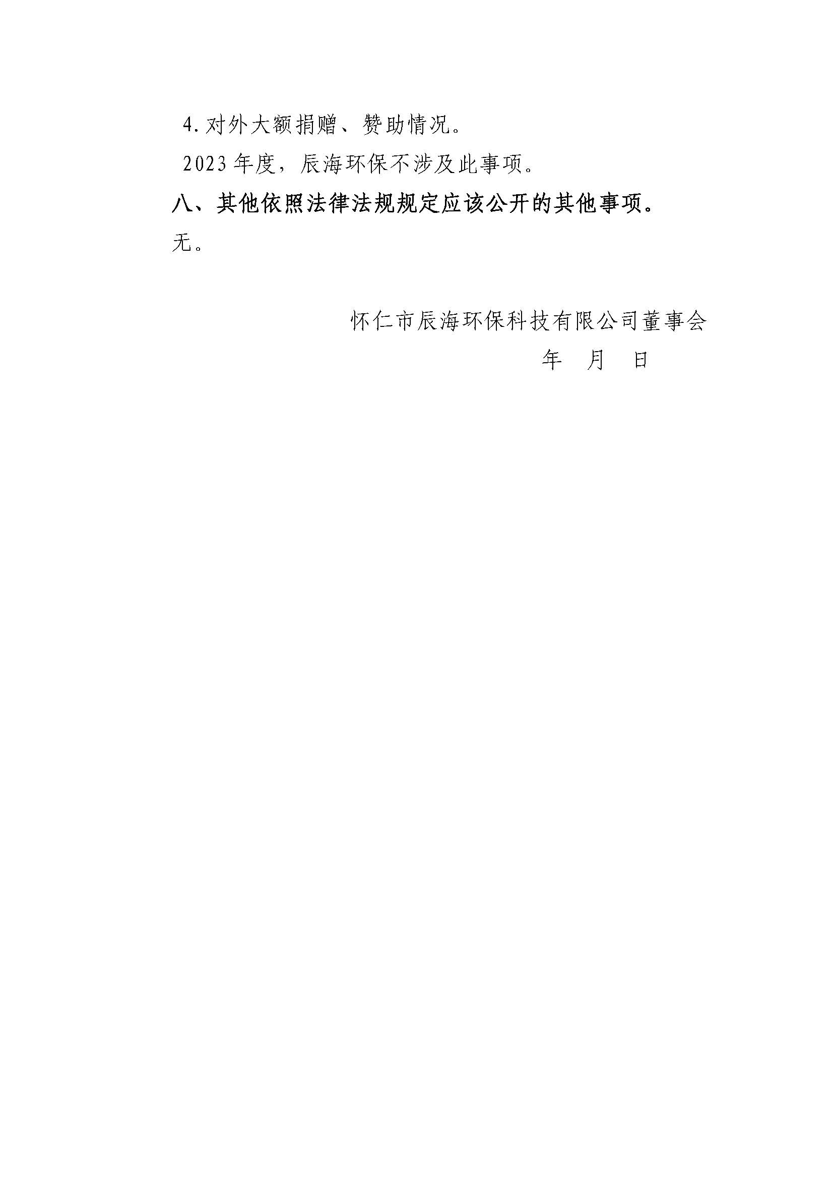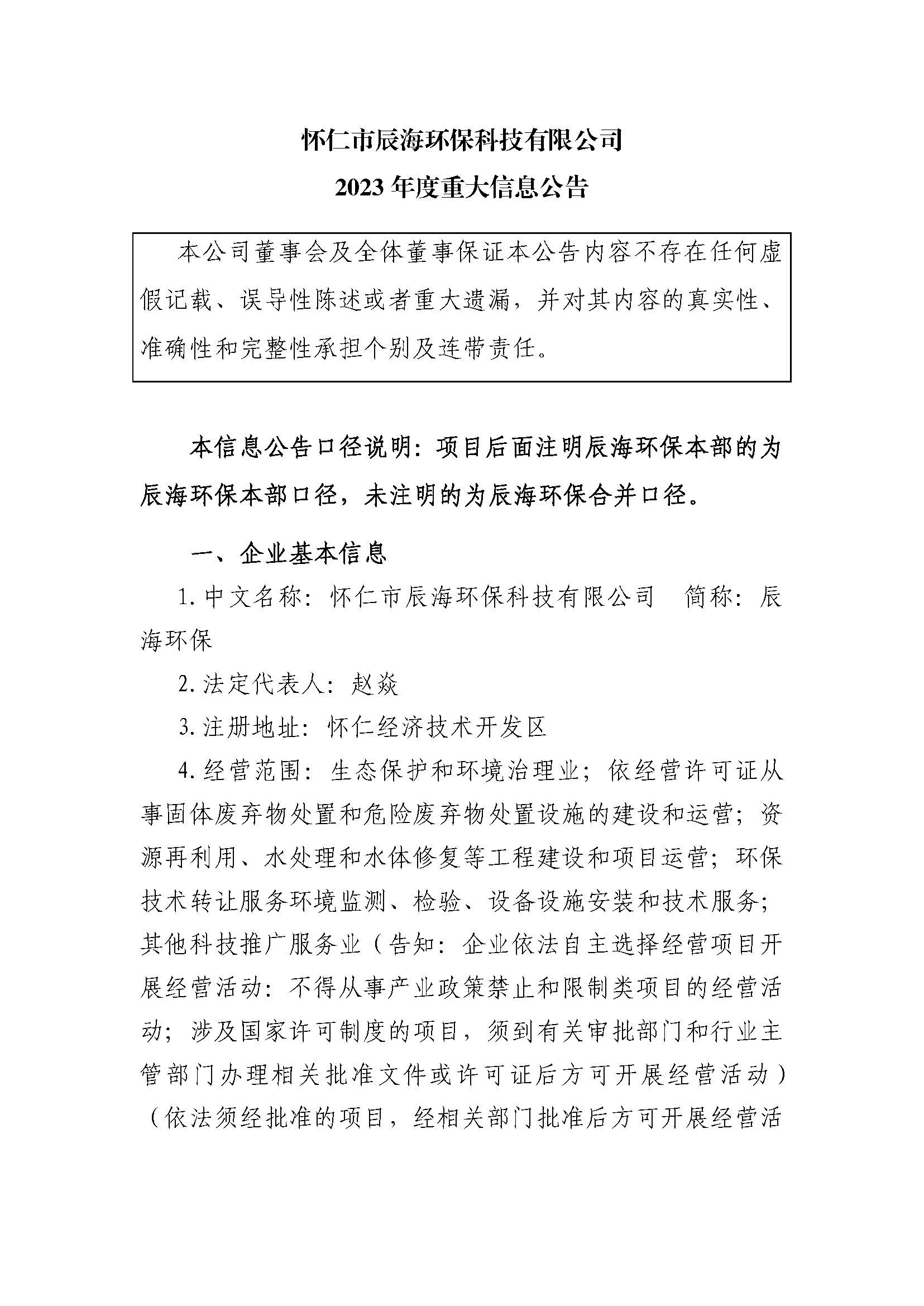 怀仁市辰海环保科技有限公司2023年度重大信息公告