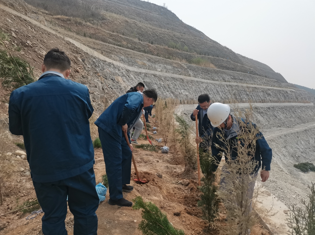活动中,公司党员和员工将1200棵侧柏树苗历尽千辛万苦的运到100多米高的陡峭山坡上进行栽植,并对原有的绿植进行维护。