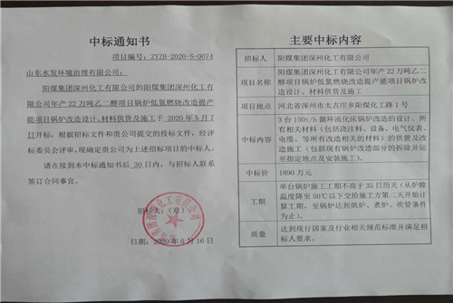 5月16日,山东水发环境治理有限公司(以下简称水发环境治理公司)成功中标阳煤集团深州化工有限公司提效改造项目!