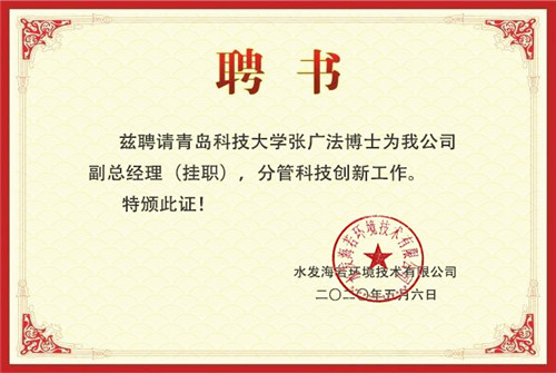 根据山东省“千名博士进企业”行动计划,落实水发“四个联系”,青岛科技大学特聘副教授张广法博士入职水发海若环境技术有限公司,挂职副总经理,分管科研创新工作。