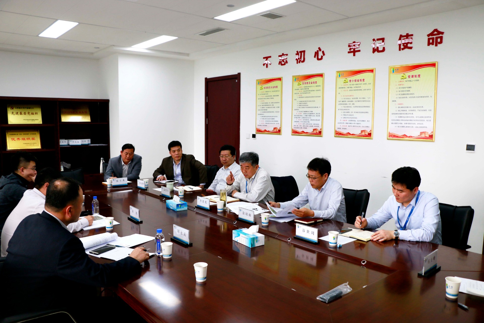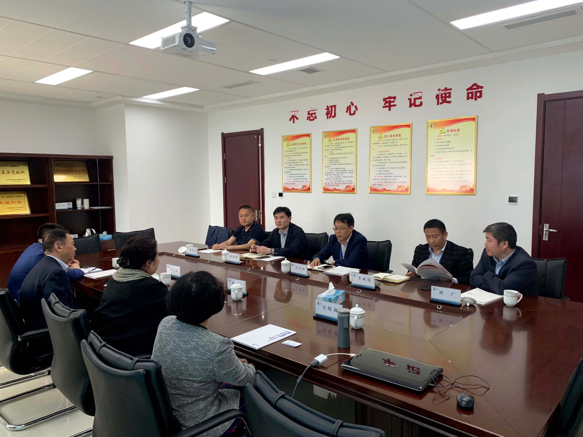 4月24日,上海弘明投资有限公司总裁宋鸿一行到访齐水发大厦,在齐鲁集团13楼会议室召开项目洽谈会,水发集团副总经理李其光、齐鲁水务集团有限公司董事长公培山、总经理助理兼市场部经理谷世周、常务副总经理高厚军、山东水发瑞乾置业有限公司董事长朱元相出席本次会议。
