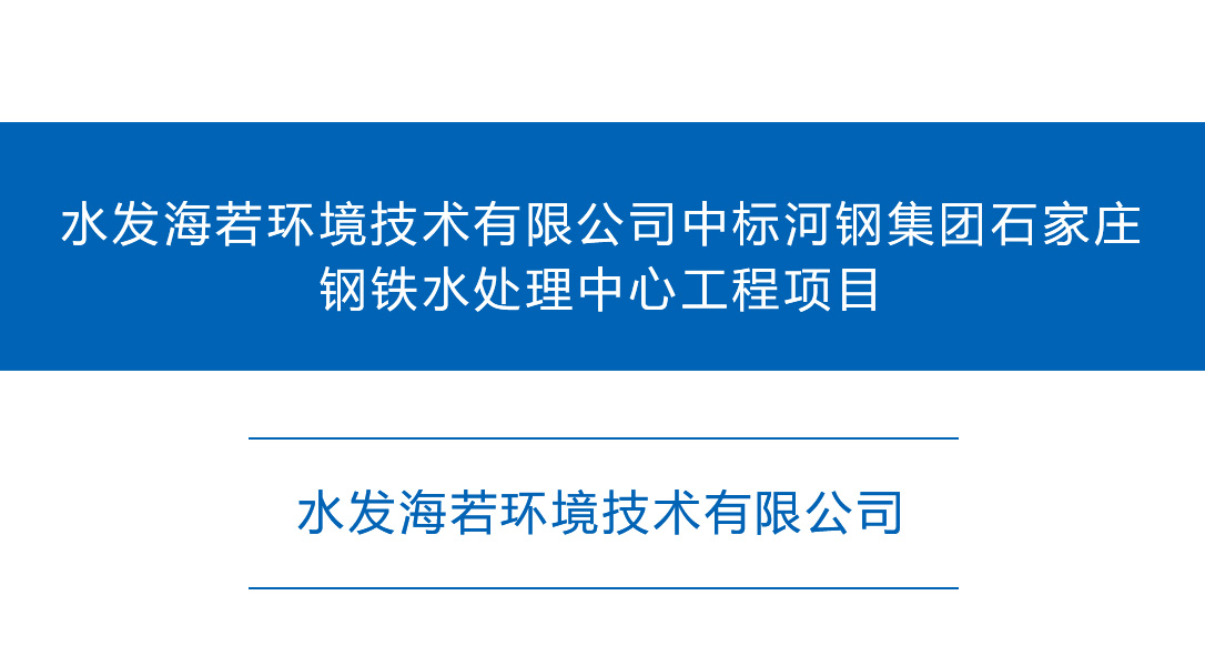 5月6日,水发海若环境技术有限公司成功中标“河钢集团石家庄钢铁有限责任公司环保搬迁产品升级改造项目全厂水处理中心工程”项目。