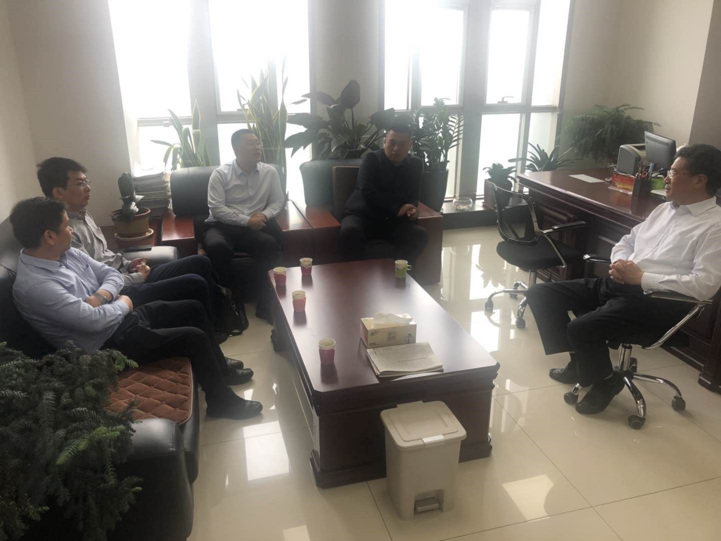 4月28日,河北海越(集团)控股有限公司董事长穆青,总裁程庆长等一行来访齐鲁集团,与齐鲁集团董事长公培山就环保科技、能源、人工智能等板块如何发展和推进合作进行交流。