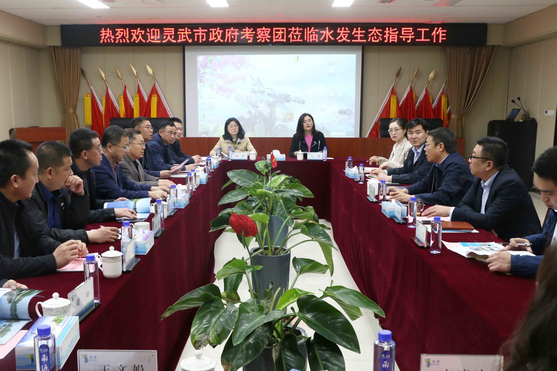 3月23日,宁夏灵武市政协主席杨文炯一行到访水发M88,就相关产业合作进行调研洽谈。水发M88党委书记、董事长公培山参加座谈,双方就再生资源循环利用、农旅产业等合作事项进行深入交流。