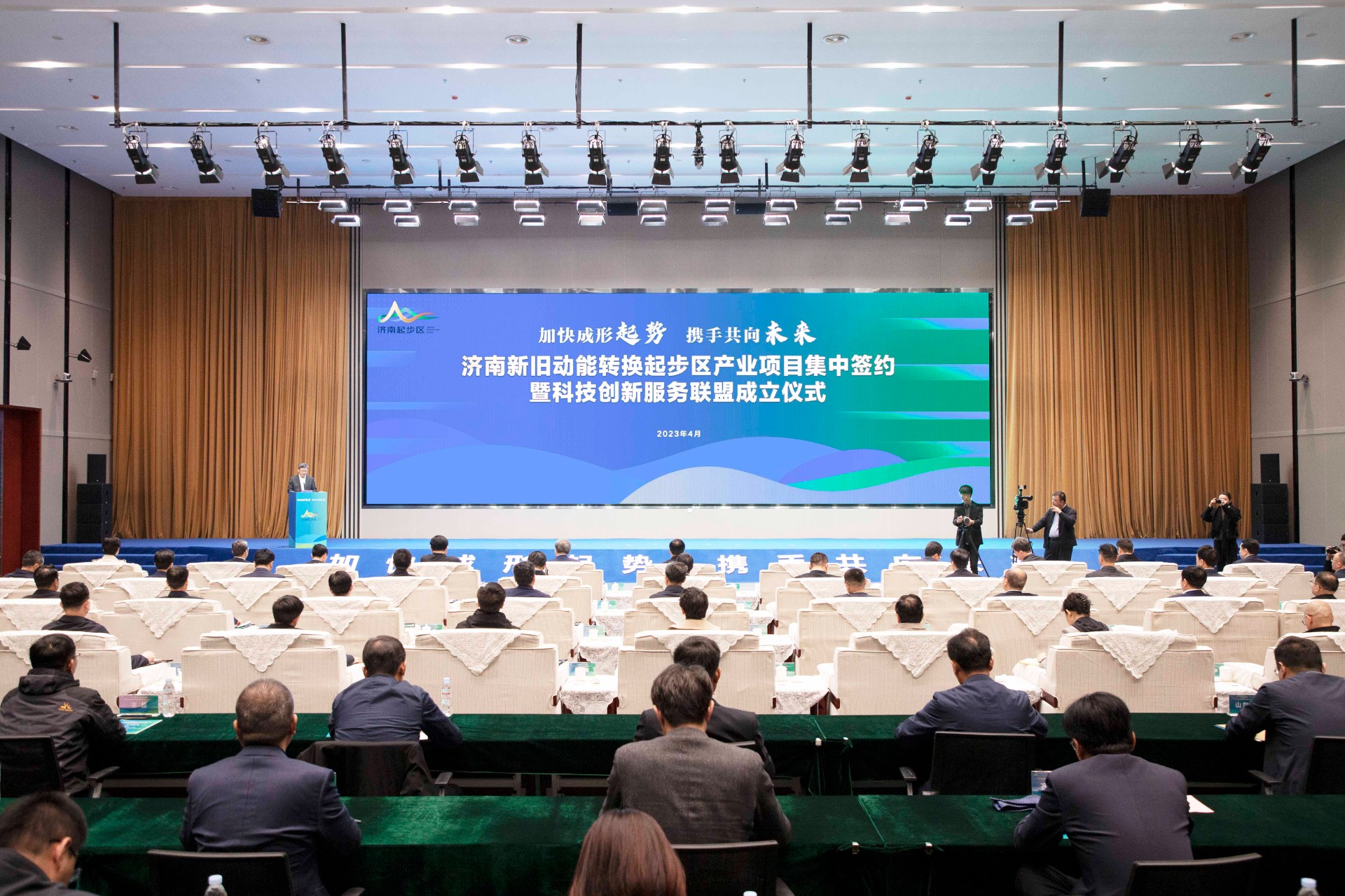 2023年4月25日,济南新旧动能转换起步区产业项目集中签约暨科技创新服务联盟成立仪式举行。市委书记刘强出席并为“济南新旧动能转换起步区科技创新服务联盟”揭牌,市委副书记、市长于海田,