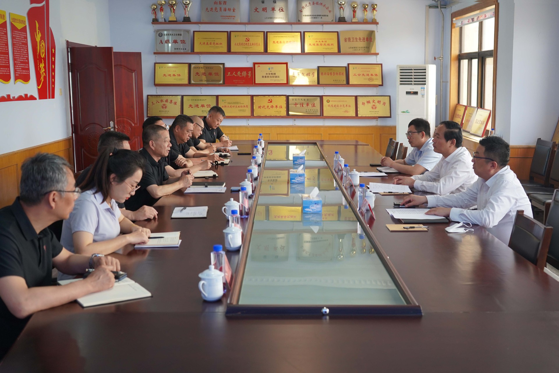 5月31日,省环保集团董事会秘书,M88集团党委书记、董事长李加坤一行到淄博瀚海水业股份有限公司(以下简称“瀚海水业”)开展调研工作。
